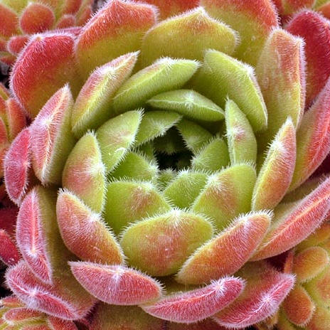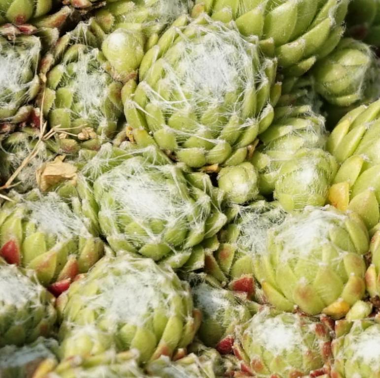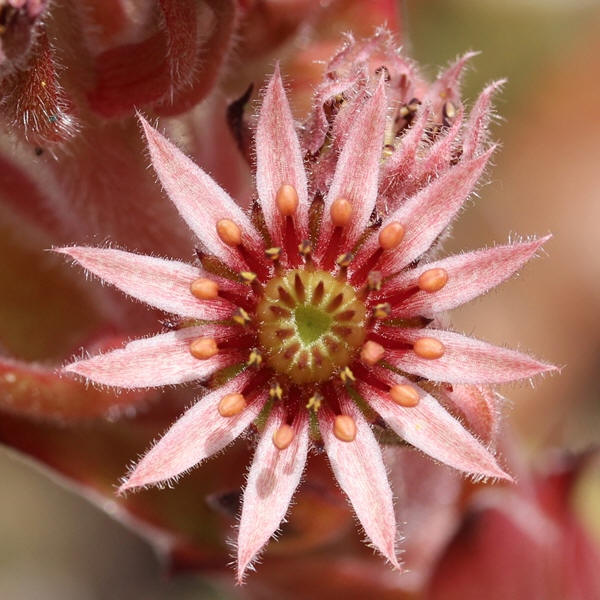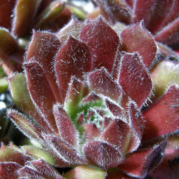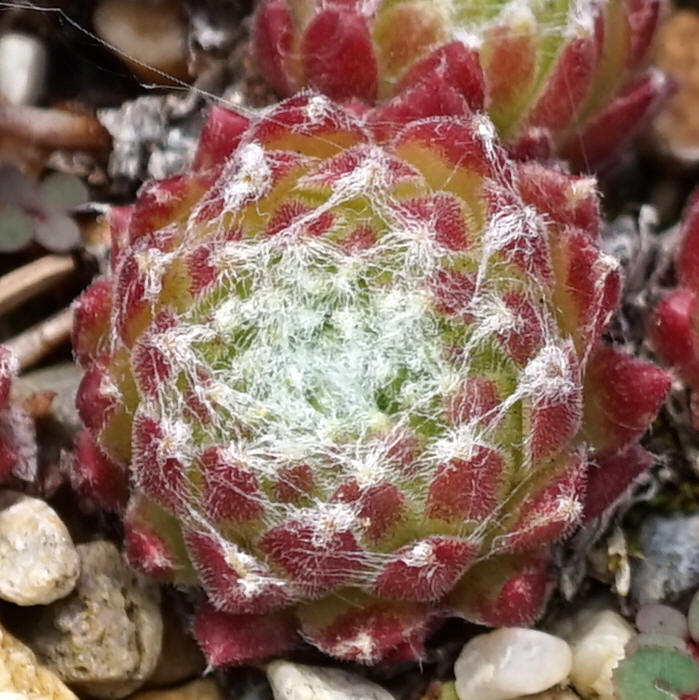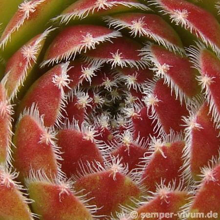 Behaarung hebt sich deutlich von den rötlichen Rosetten ab