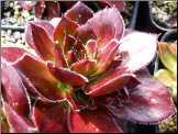 Rosetten, Blätter oval lang, bespitzt, trübes Rot, Blattränder gelb, leicht