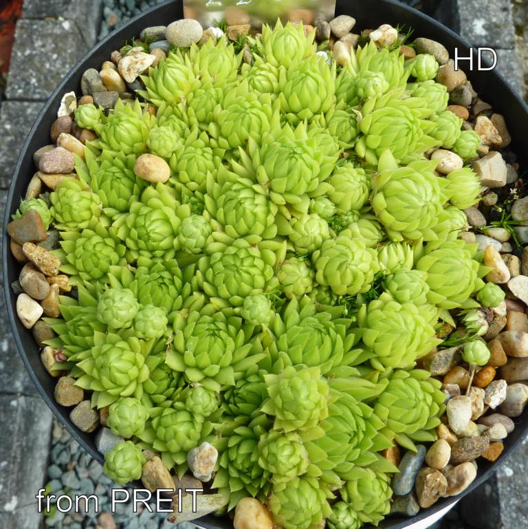 Lokalform Sempervivum globiferum ssp. allionii from PREIT / aus Sammlung Andre Smits / Erwin Geiger: Maira-Stura-Gebiet der Alpen mit kugeligen, grüngelben Rosetten /Italien / Maira-Stura-Gebiet / Colle del Preit 2070 m ü. NN / Quelle Wikipedia