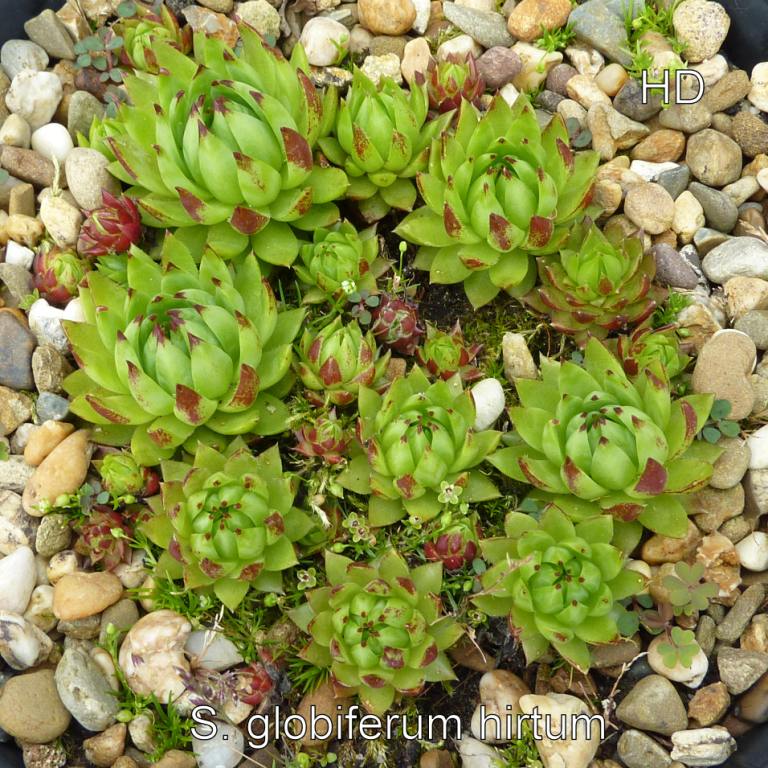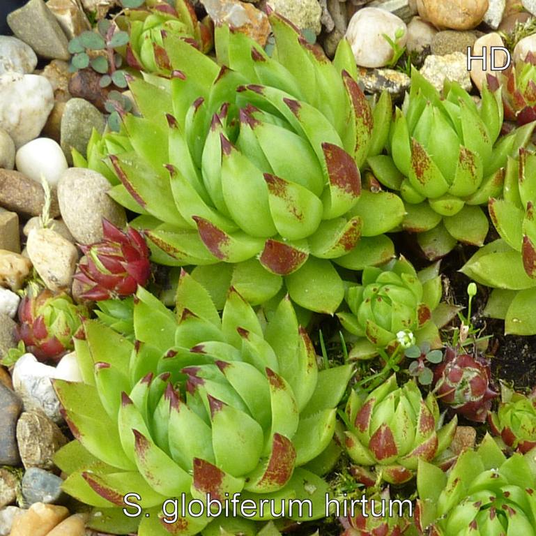 S. globifereum ssp. hirtum (L.) 't Hart & Bleij syn.: Jovibarba globifera ssp. hirta (C. von Linnaeus) J. Parnell (1990) IK: Sempervivum hirtum L., Amoenitates Academicae, vol. 4: Juslenius A.D., "Centuria I. Plantarum":§12, n° 33, p. 273 (1759)
