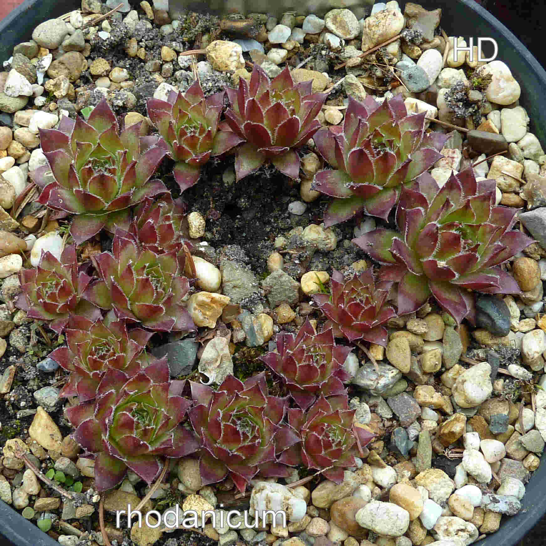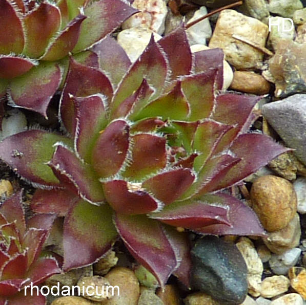 Linne 1753 Sempervivum rhodanicum A. Jordan & J. Fourreau (1868) [Obsolete name] / Vorkommen: Frankreich Departement l'Ain / Rhone ist oft auch als Cultivar Sempervivum 'Rhodanicum' im Umlauf ( angebl. Züchterin Helen Payne / USA / ? / ) mittelgroße Rosetten, die äußeren Blätter dunkelrot, auf den Blattspitzen silbrige Haare