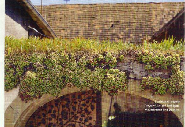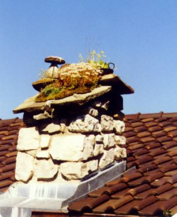 Schornstein mit Sempervivum- und Sedumarten, entdeckt in Inzell 2000