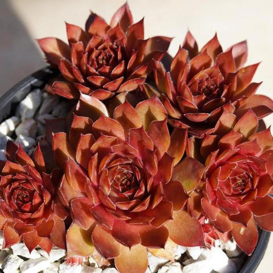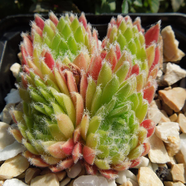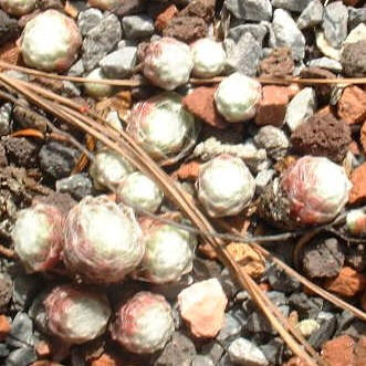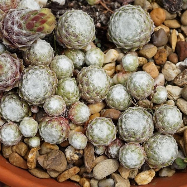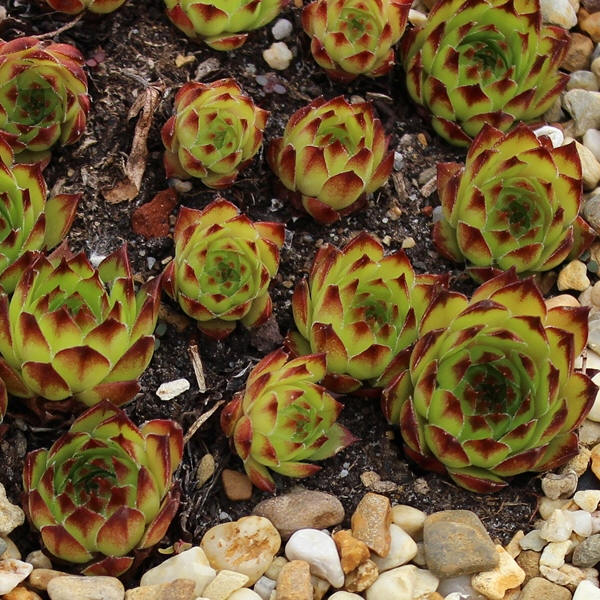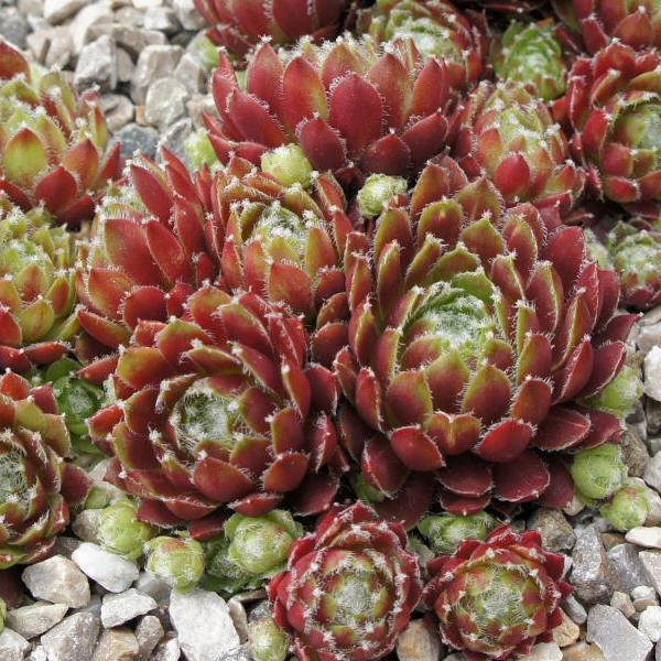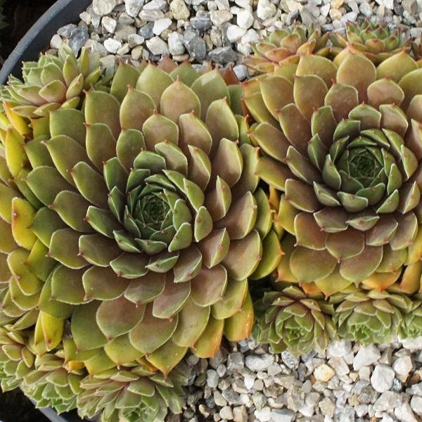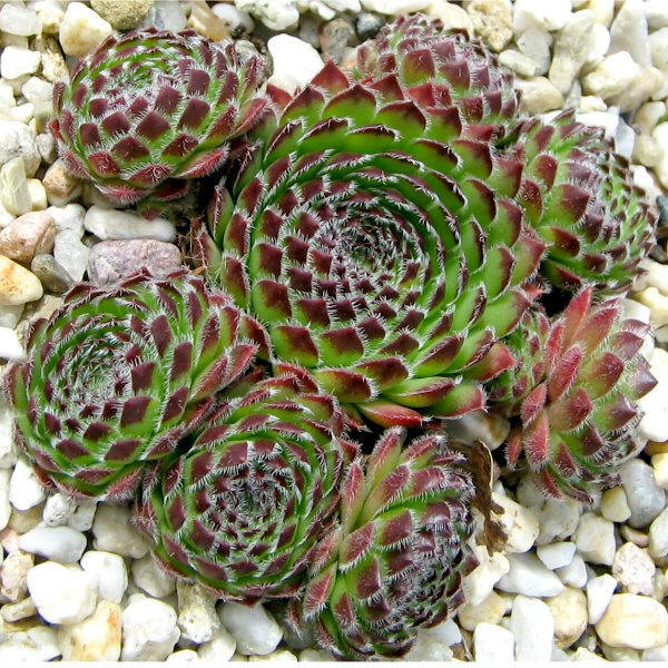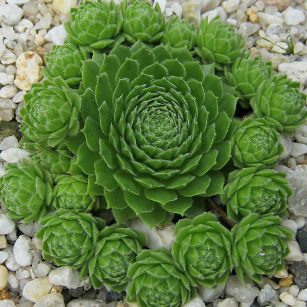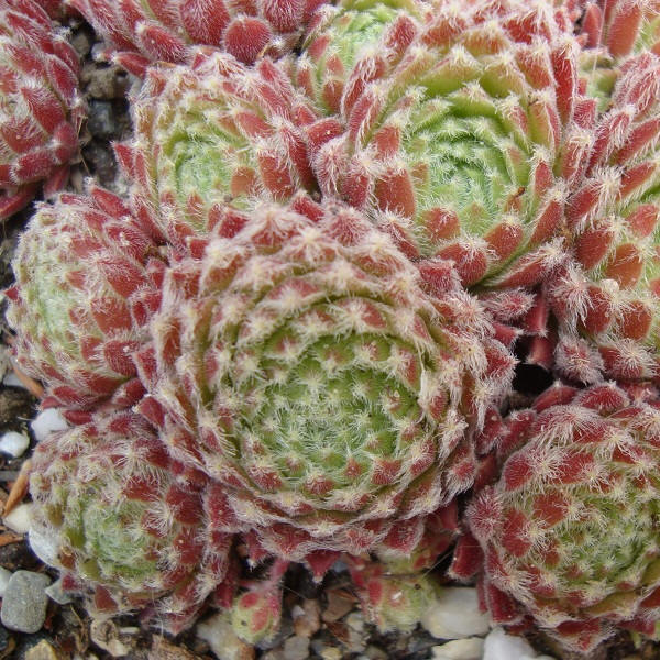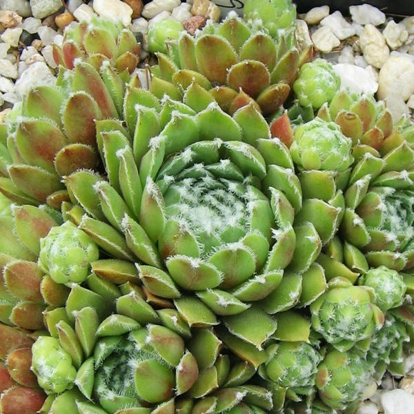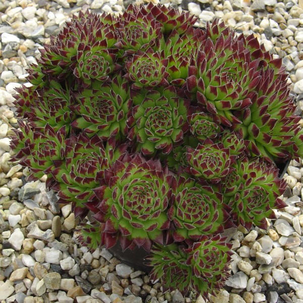mittelgroße, kugelige Rosetten, die ein kompaktes Polster bilden. Die