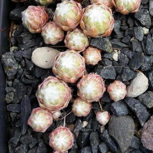von S. arachnoideum cv. Silberknopf ausgelesen. cv. Wollknopf formt